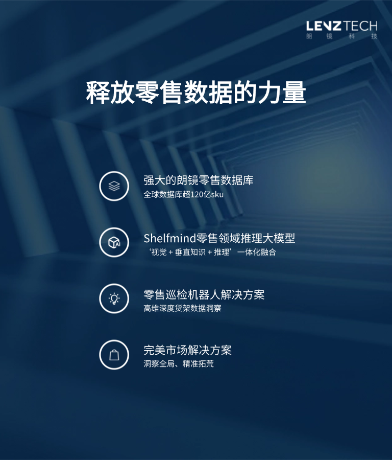 朗镜科技是业界领先的专注于零售业计算机视觉解决方案与数据分析的公司之一。朗镜科技利用自身领先的人工智能、图像识别、众包平台以及物联网(IoT)将日常货架图像转化为实时、可执行的洞察,客户得以优化店内执行策略,提高产品上架。简言之,朗镜科技将实体零售数字化。众多顶级消费品品牌和零售商通过使用朗镜科技的店内执行工具、分析服务和货架监测解决方案,大规模地推动积极的购物者体验,并在零售各个节点增加收入机会。朗镜科技已成功服务众多消费品品牌和零售商客户,覆盖了食品与饮料、啤酒、母婴、日化、家化、调味品、家电、医药等众多行业。