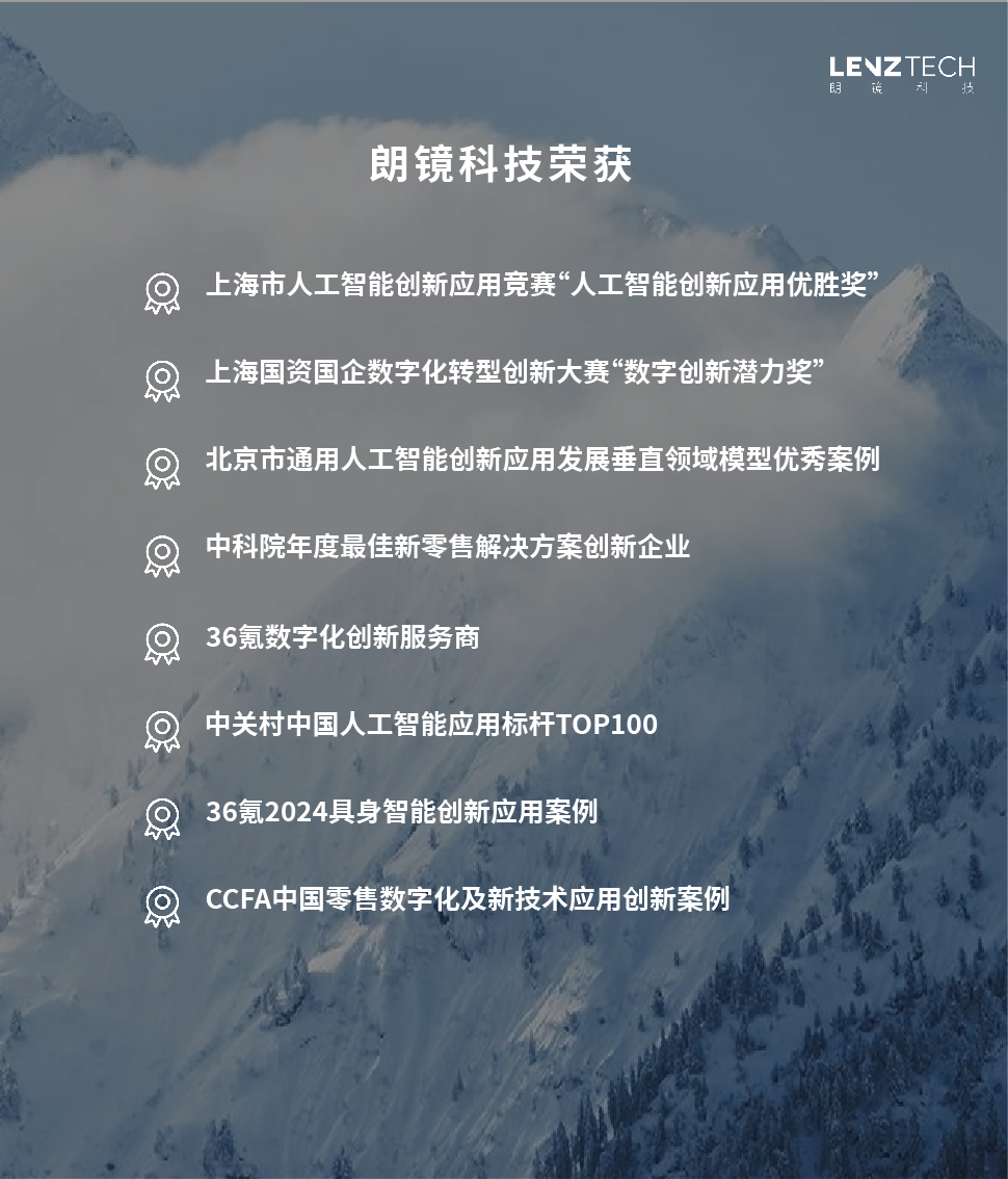 朗镜科技是业界领先的专注于零售业计算机视觉解决方案与数据分析的公司之一。朗镜科技利用自身领先的人工智能、图像识别、众包平台以及物联网(IoT)将日常货架图像转化为实时、可执行的洞察,客户得以优化店内执行策略,提高产品上架。简言之,朗镜科技将实体零售数字化。众多顶级消费品品牌和零售商通过使用朗镜科技的店内执行工具、分析服务和货架监测解决方案,大规模地推动积极的购物者体验,并在零售各个节点增加收入机会。朗镜科技已成功服务众多消费品品牌和零售商客户,覆盖了食品与饮料、啤酒、母婴、日化、家化、调味品、家电、医药等众多行业。